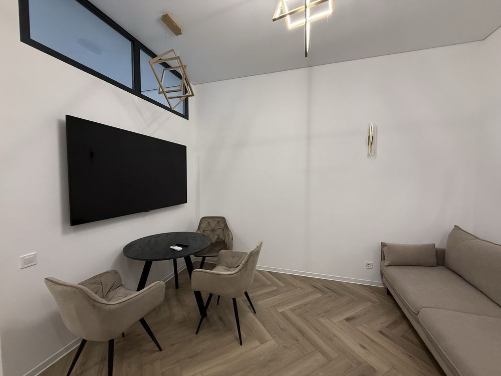 Кухня с гостевой и обеденной зонами, большой тв с интернетом, микроволновка. Пылесос