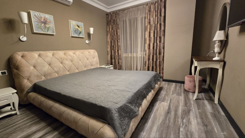 Код: 172. ПОМЕСЯЧНО АРЕНДА АКТУАЛЬНА В ПЕРИОД С 01.09 ДО 30.05 (в летний сезон сдается посуточно от 2-х суток, раннее бронирование от 5-и суток и более). Пятикомнатная квартира в центре Одессы, ул. Дерибасовская/угол Греческой площади, 2/3 - эт. дома - памятника архитектуры, общая площадь 100 кв. м. Авторский ремонт, сочетание классики и современного стиля, качественные материалы, высокие потолки (5 м.), большой зал в двух уровнях с LCD телевизором, четыре спальни с большими двуспальными кроватями, дорогая итальянская мебель, кожаная мягкая мебель, огромная круглая кровать в центре главной спальни, создают атмосферу абсолютного комфорта. Санузел с джакузи на 2 места. Квартира оборудована: 3 кондиционера, плазменный TV + 2 LCD TV в спальнях, WI-FI интернет, большая джакузи, DVD, стиральная машина, CD-магнитола, спутниковое ТВ, микроволновая печь, фен, кофеварка, тостер, телефон. Прекрасный вид из окон на Греческую площадь. Удачное расположение дома, самое сердце Одессы, множество достопримечательностей, потрясающая архитектура, множество кафе и ресторанов под открытым небом. Напротив дома (в самом центре Греческой площади) расположен большой торговый центр «Афина» (с платным подземным паркингом). Вход в дом - железные ворота с домофоном. Допускается проживание с животными. Аренда от 1-го месяца и более. Стоимость может варьироваться в зависимости от срока аренды. Перед просмотром уточните наличие и детали по VIBER, WHATSAPP или TELEGRAM, указав «КОД» из объявления. КОМИССИЯ ЗА УСЛУГИ РИЭЛТОРА - 50% от месячной аренды (разовая оплата при оформлении договора).