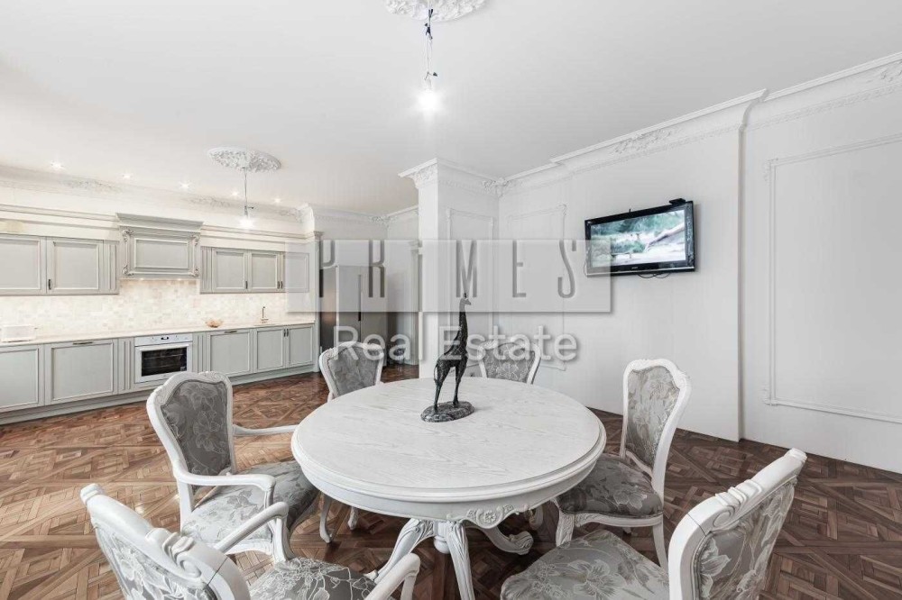 Видові апартаменти, з вікон яких відкривається чудова панорама на Дніпро, Печерську Лавру. Ремонт виконано у стилі сучасної класики з використанням найякісніших матеріалів. Підлога - паркет, сантехніка Villeroy Boch, техніка Miele, італійські меблі, потужна система очищення води.