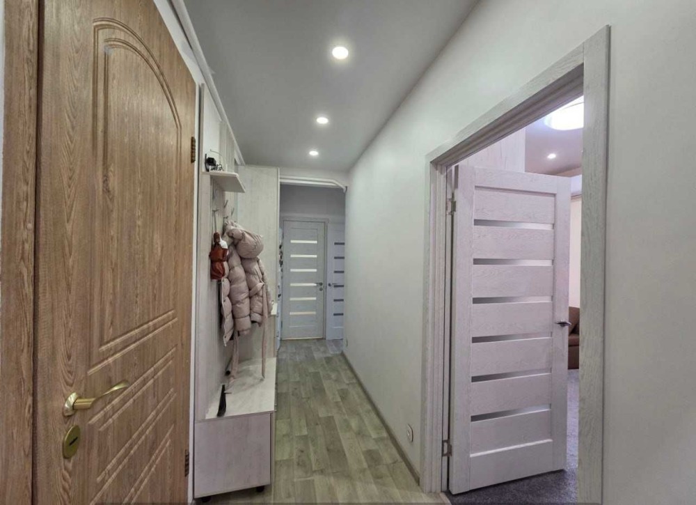 Квартира очень уютная. На полу в комнатах мягкий ковролин, в кухне и прихожей – качественный ламинат/плитка. Современные межкомнатные двери.