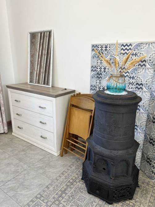 В доме светлая кухня с большим окном, полноценной рабочей зоной и всей необходимой техникой. Гостиная просторная, с действующей чугунной печью, которая создаёт настоящее живое тепло и особое ощущение уюта в холодное время года. Это редкая деталь, которая делает дом по-настоящему домашним.