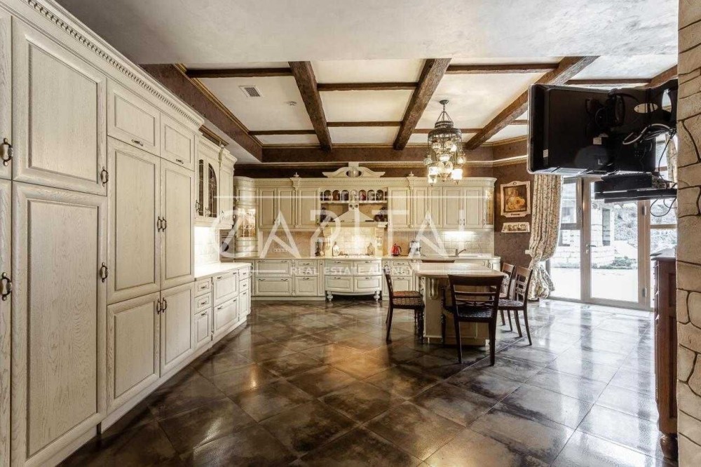 В двухэтажном доме (750 м2) в поселке «Новые Безрадичи» выполнен качественный дизайнерский проект с использованием дорогих материалов, пол постелен из красного дерева, плитка с подогревом. Высота потолков – 3,4 метра. Дом укомплектован всей необходимой техникой и мебелью и полностью готов к заезду и проживанию.