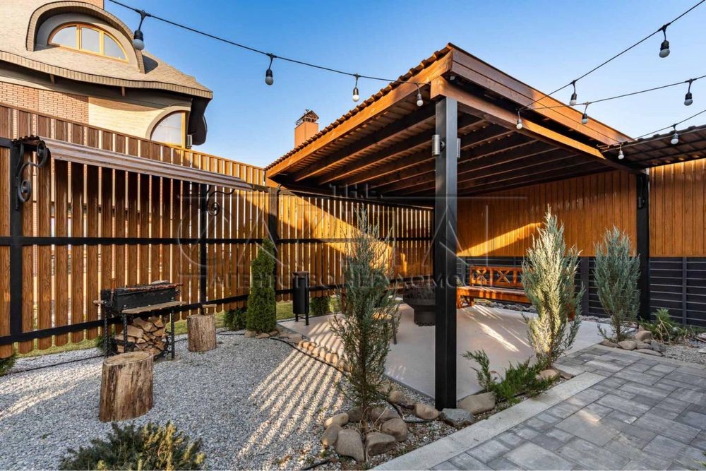 • Ландшафт — фонтан-водоспад, альтанка, зона барбекю, автополив