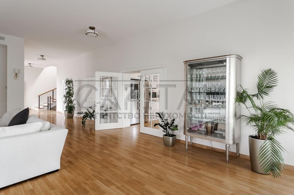 Аренда дома 600м2, КМ Конык, Чапаевка, КиевПредлагается в аренду дом 600 м2 терраса. В коттеджем охраняемом поселке «Конык» (р-н Жукова острова, )с выходом на речку Конык и лиственный лес. Ремонтвыполнен из высококачественных материалов, дизайн-проект в американском стиле. Участок 10 соток с озеленением и автополивом. Удобная транспортная развязка: прямой выезд на Столичное шоссе, 15мин до центра города, 20мин до аэропорта «Борисполь», остановка общественного транспорта 3мин и 10мин до метро «Выдубичи».Зонирование дома:на «0» этаже, 2 комнаты для персонала, холодильная камера, оружейная комната, кладовая, спорт-зал, постирочная, с/у, душевая;на «1» Просторная гостиная с камином, зоной отдыха и столовой зоной, кухня и выход на просторную террасу на которой расположено барбекю, обеденный стол, дива, кабинет, гардеробная и выход в гараж.на "2" этаже, 5 спальных комнат, в каждой из них есть гардеробная и свой с/у.Оснащение дома: полы с подогревом (вода); покрытие пола 1-го и 2-го этажей паркет, 0-го этажа плитка; С/узлы оснащены необходимой сантехникой кухня оборудована техникой SMEG, система водоочистки и насос повышения давления воды; конденсационный котел vissman; автоматические въездные ворота; кондиционирование в каждом помещении сплит-системами, охранная система. Отдельно на первом этаже ест ь2 комнаты для охраны. Дом полностью обеспечен видео-наблюдением и генераторе на 30 кВ;.Просмотры в удобное время!#3159 1734 7126