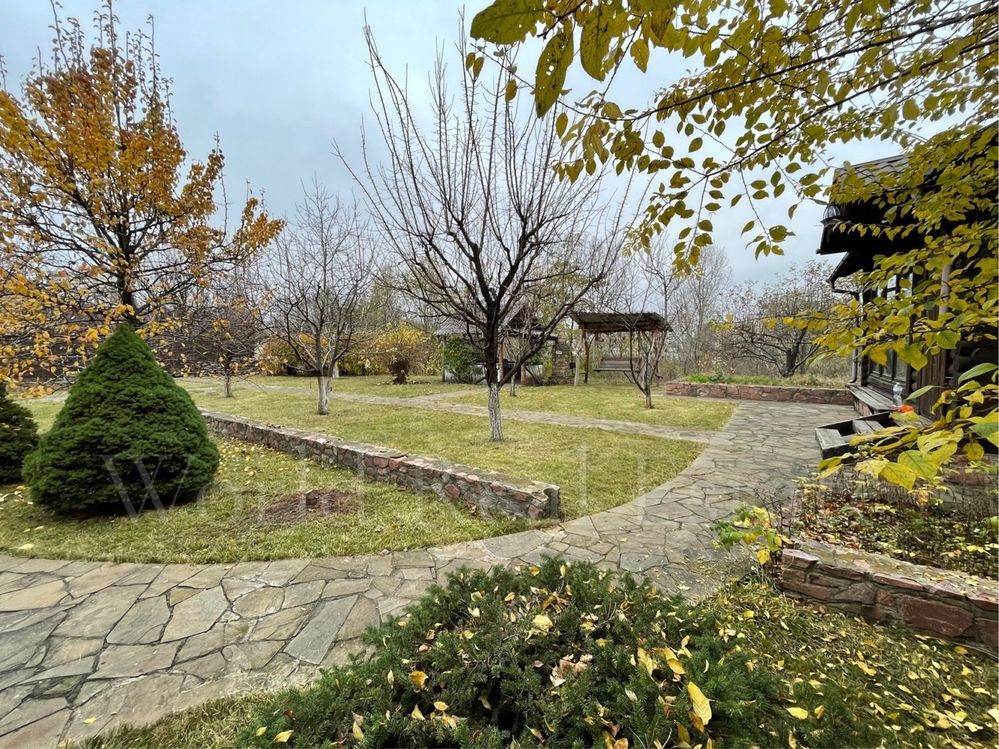 На ділянці 20 соток ландшафтний дизайн, озеленення з висадженими туями, фруктовими деревами, кущами малини та газоном, дитяча зона, барбекю, окремий будиночок відпочинку, місце для садового інвентарю.