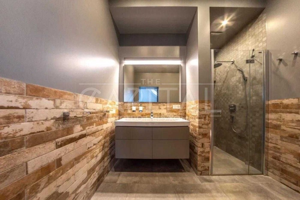 • При оздобленні вбиралень використовувався мармур Calacatta. Сантехніка VilleroyBoch. Вбудована техніка Siemens
