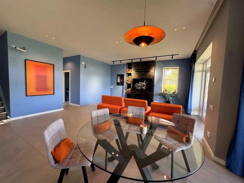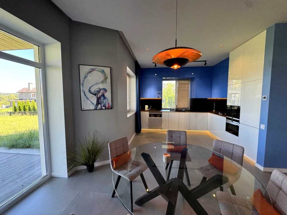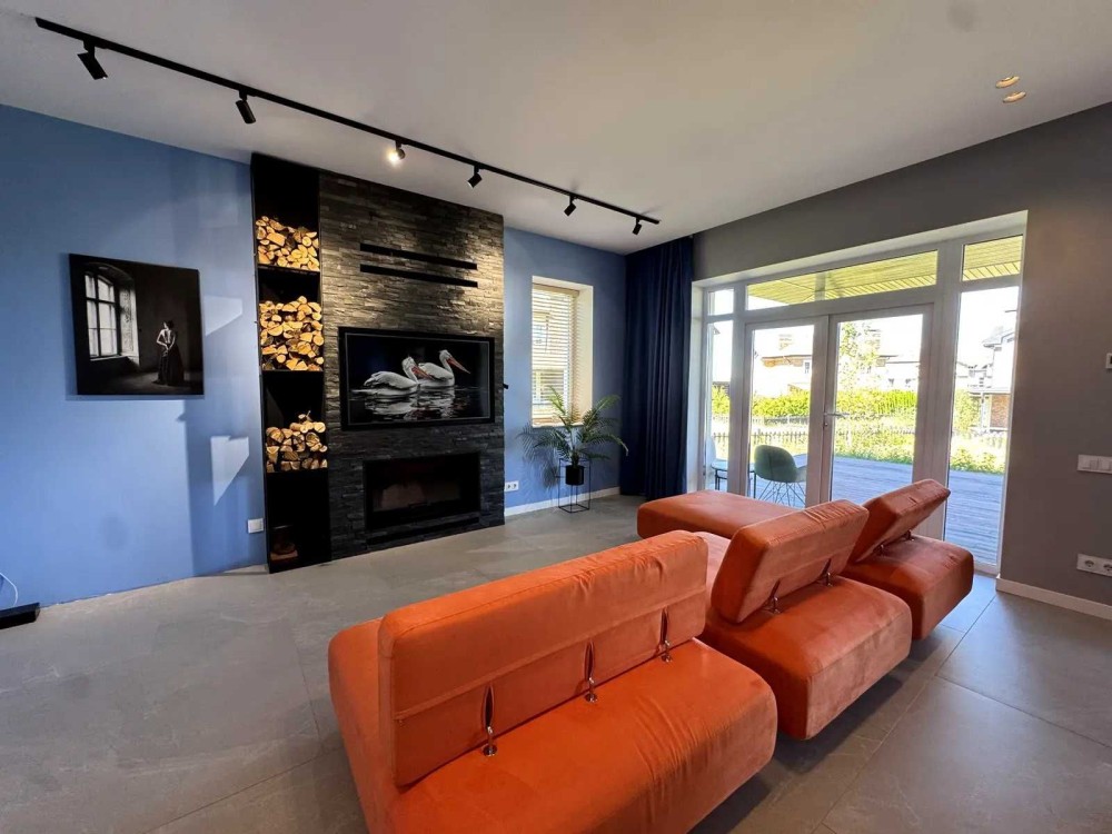 Дом: гараж с системой автономности (фильтрация воды, аккумуляторы, стабилизатор), просторная гостиная с камином, кухня Siemens, кабинет, терраса, 4 спальни, 3 санузла, гардеробные. Мастер-спальня с отдельной ванной и премиальной сантехникой. В доме тёплый пол, генератор, современное освещение.