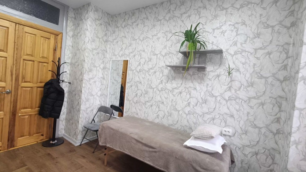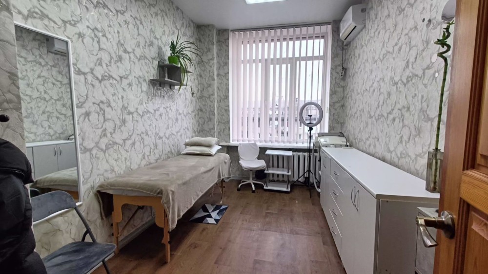 Кондиціонер (з обігрівом), кушетка, стілець для майстра і для клієнта, косметологічна етажерка, велика робоча зона, полиця, кільцева лампа, дзеркало, вішак.