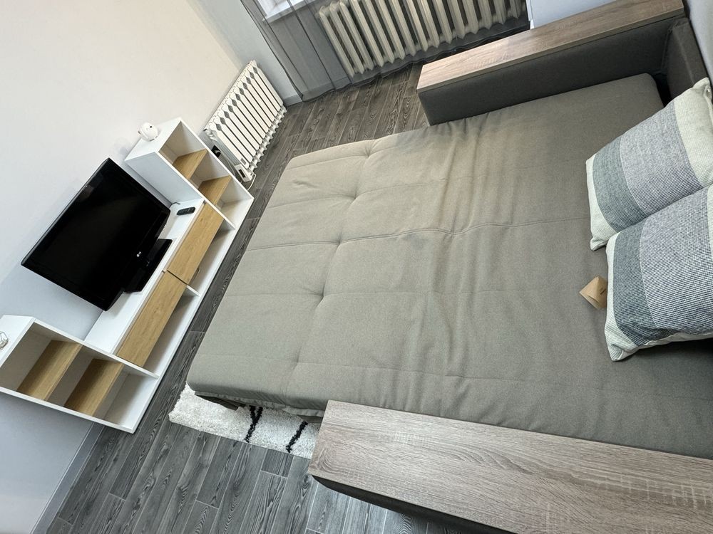 Два телевизора, диван раскладывается. Большой шкаф, столик с подсветкой.