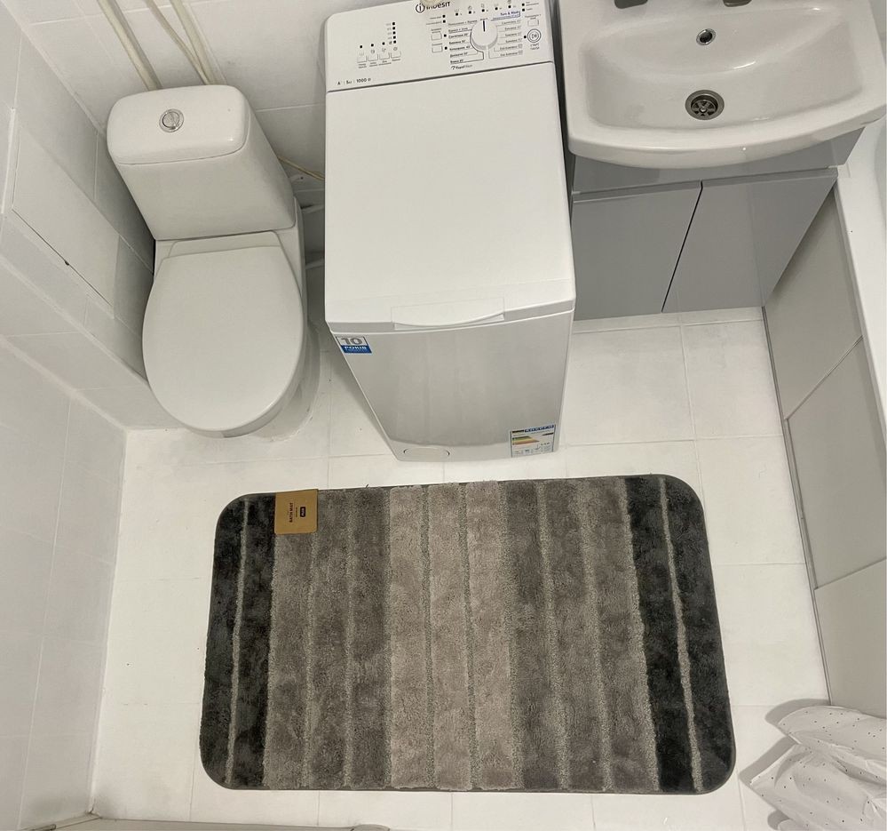 Новая стиральная машина, новый холодильник, новая кухня.