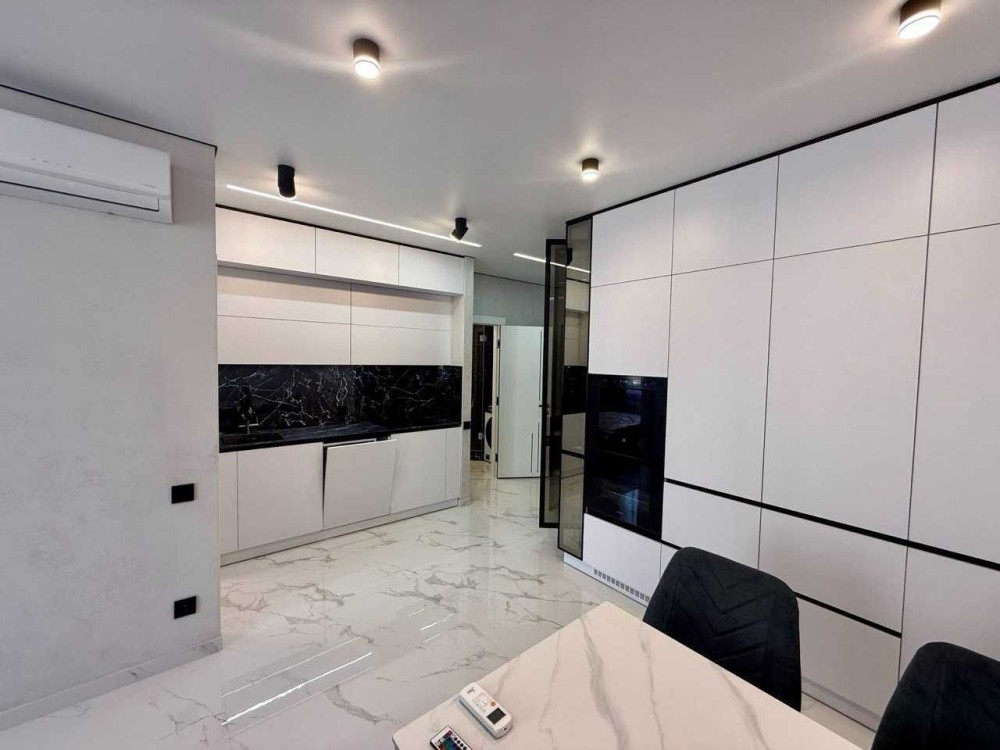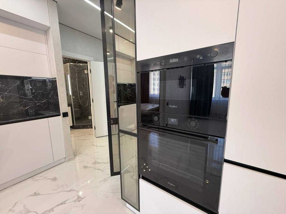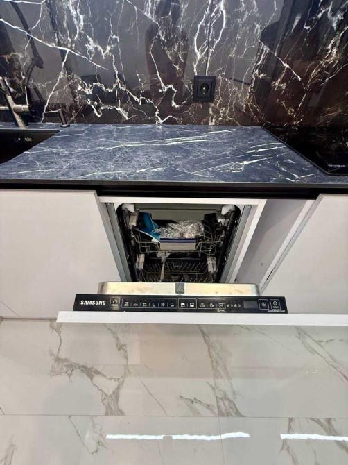 Бытовая встроенная техника — холодильник, духовка, микроволновка, посудомоечная машина, стиральная машина с сушкой, мощный кондиционер. Еще установится новый ТВ