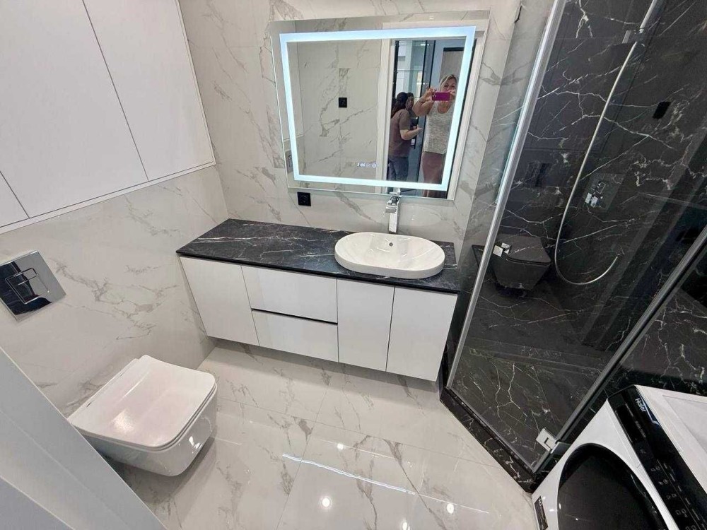 Умная сантехника: унитаз с инсталляцией и подсветкой, рукомойник, фильтрованная вода и дозатор врезанный в мойке.