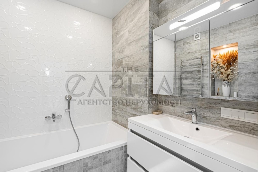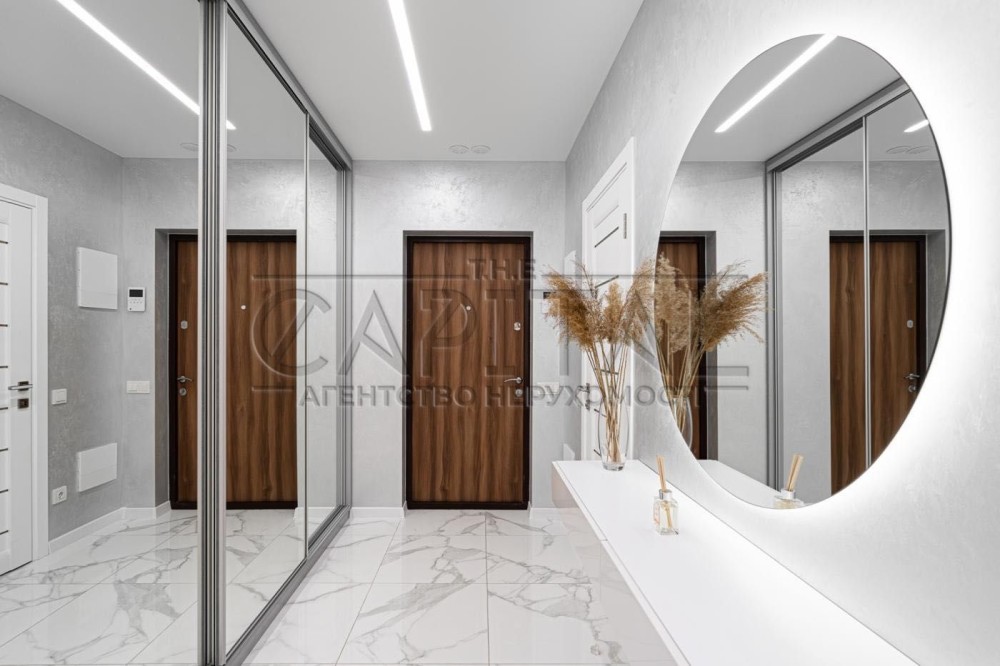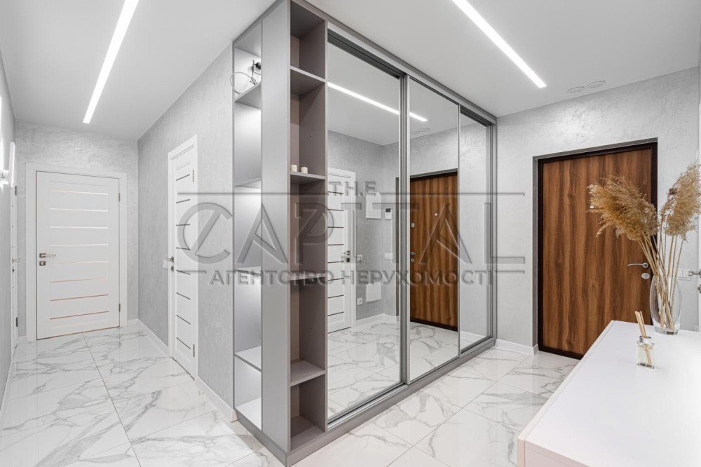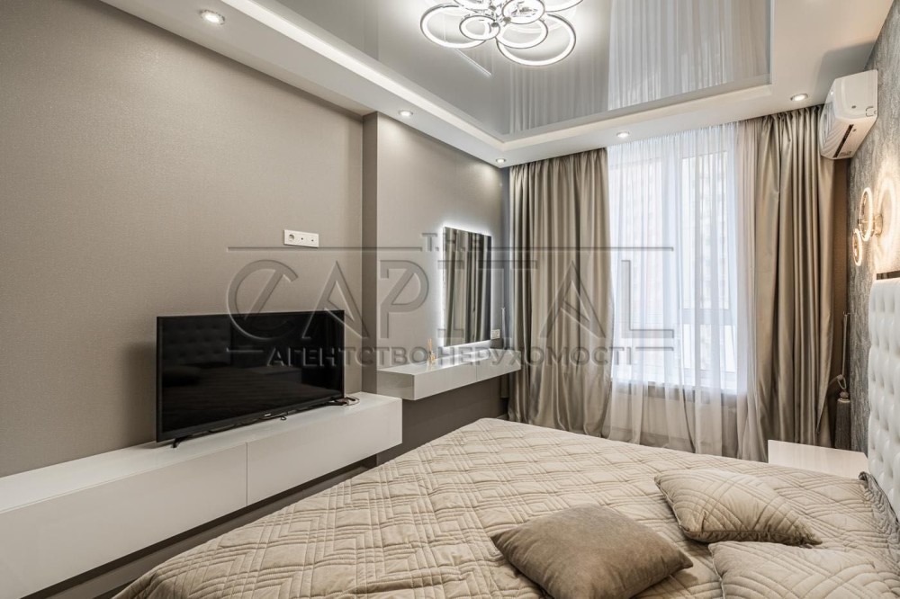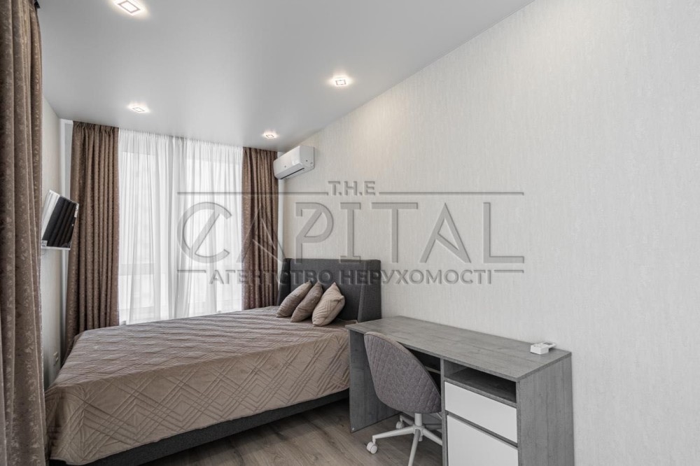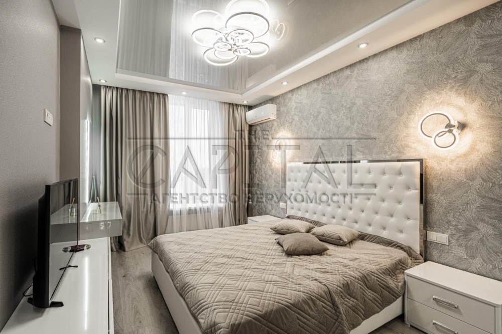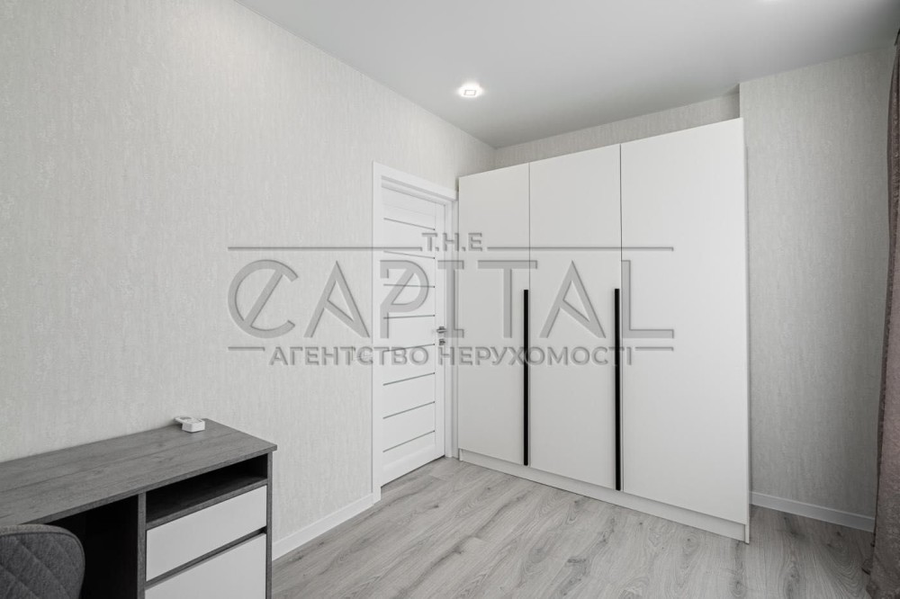 У коридорі розміщена велика гардеробна шафа виконана індивідуально на замовлення. У господарській спальні велике ліжко 1800х2100 гардеробна шафа, 2 кімнати підготовлені під Ваші потреби, в них можна облаштувати як дитячі так і зал з кабінетом. З вікон відкривається дивовижний краєвид з одного боку на історичну частину Києва, Печерськ, Батьківщину Мати, собори та храми Києва з іншого серця комплексу фантанів дитячі майданчики. Комплекс розвивається і зростає будівництво триває ні на що планується 7 дитячих садків, 3 школи, в нежитлових фондах облаштовується необхідна для життя інфраструктура магазинчики, кав'ярні, салони і т.д. У пішій доступності від комплексу 700 метрів метро Видубичі, магазини Сільпо, ЮСК, ринок, дуже гарне транспортне сполучення та розв'язка.