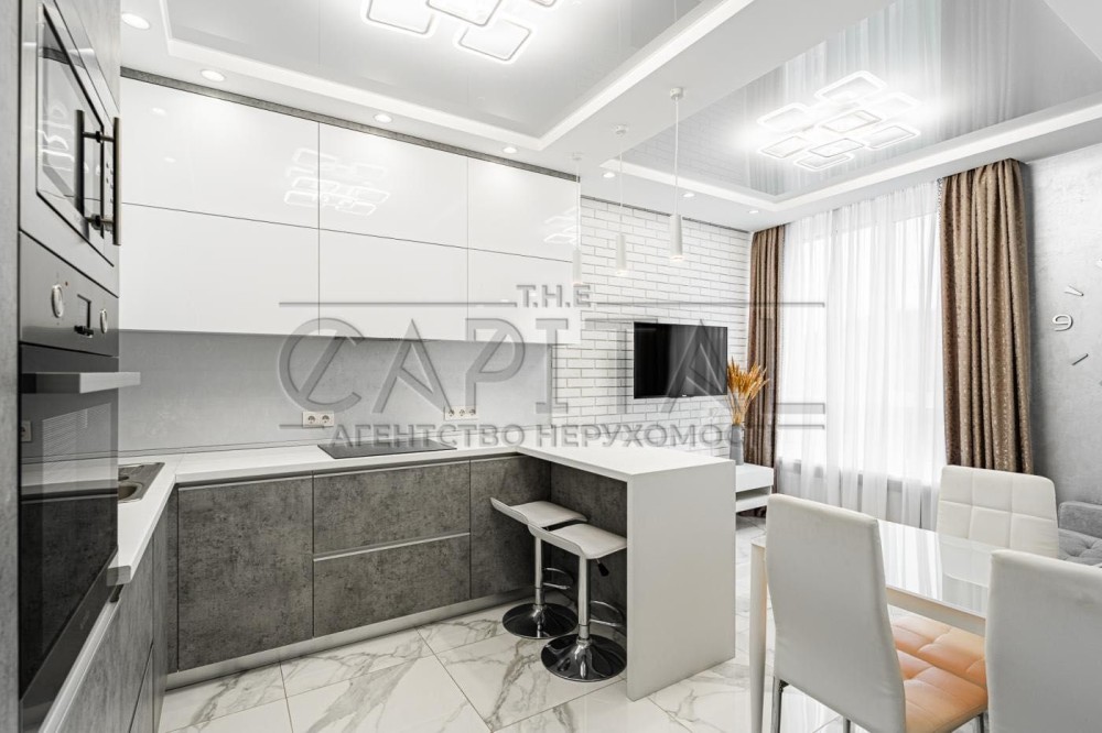 Зроблено мега класний дизайнерський ремонт для себе. Все продумано до дрібниць. Велика простора кухня із зоною відпочинку, кухонні меблі та техніка не залишить байдужою жодну господиню, вся техніка вбудована холодильник, духовка, НВЧ, посудомийка, витяжка. У квартирі 2 санвузли в яких розміщені інсталяції, технічні шафи під пральну машину, встановлені бойлер на 100 літрів, пральна машина з сушінням, душова кабіна для гостей і велика господарська ванна.