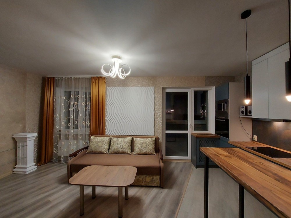 Оренда стильної 1 к кв з кухнею студією в новому будинку ЖК "Файна Таун" в Шевченківському районі, вул. Салютна, 2 Квартира 43 м2 , розташована на четвертому поверсі та складається з передпокою, спальні, великої кухні -студії та санвузла. Вікна квартири виходять в двір. Облаштована всіма необхідними меблями з екологічно чистої деревини та оснащена побутовою технікою: телевізор Samsung Smart 43, кондиціонери в кухні та кімнаті, плита індукційна, вбудований холодильник, духова шафа з функцією мікрохвильової печі, пральна машина з сушаркою. В кухні та ванній кімнаті тепла підлога, високошвидкісний інтернет. ЖК "Файна Таун" це: закрита територія з входом по картці, цілодобова охорона, відеоспостереження, паркінг, підземні контейнери для сміття, зарядні станції для електромобілів та лавки з інтегрованими батареями для підзарядки девайсів, розумне освітлення, яке підлаштовується під час доби та ще багато чого для того, щоб жити з комфортом й ні в чому себе не обмежувати) розповім при перегляді. Зручне транспортне сполучення та розвинута інфраструктура: магазини,спортивні та пішохідні зони ,зона барбекю, ресторани та кафе. Квартира, в якій поєднані комфорт та затишок, шукає своїх порядних орендарів молоду пару або одну людину без дітей та тварин. Перша оренда, квартира вільна.