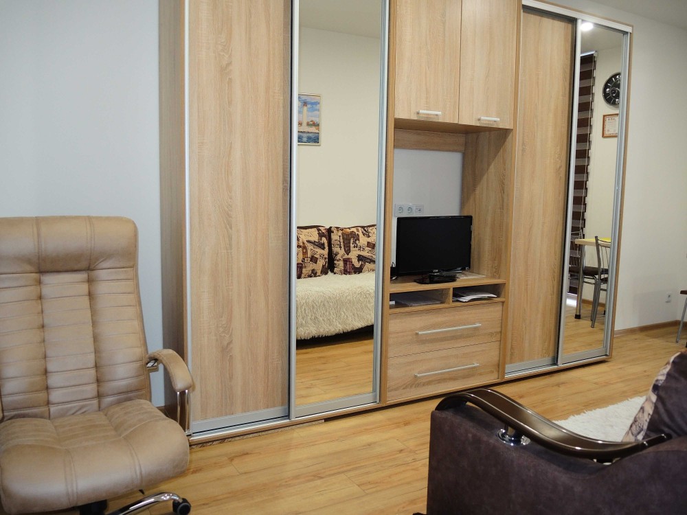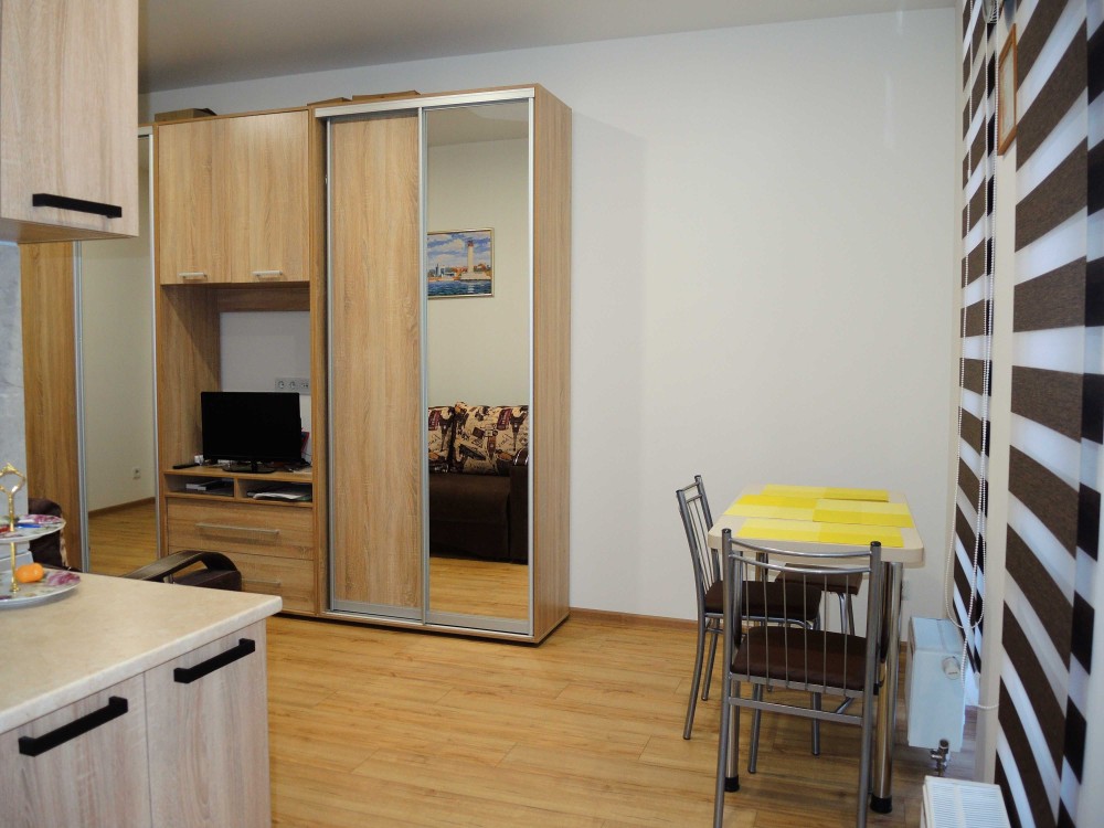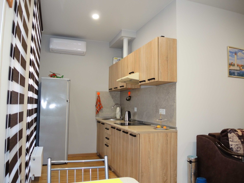Квартира оборудована новой техникой и новой мебелью (холодильник, кондиционер, телевизор, стиралка, бойлер, микроволновка, wi-fi, шкаф-купе, 2х спальный диван) и состоит из прихожей, кухни, гостиной и сан узла.
