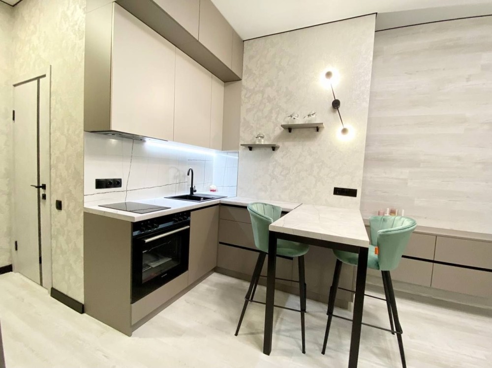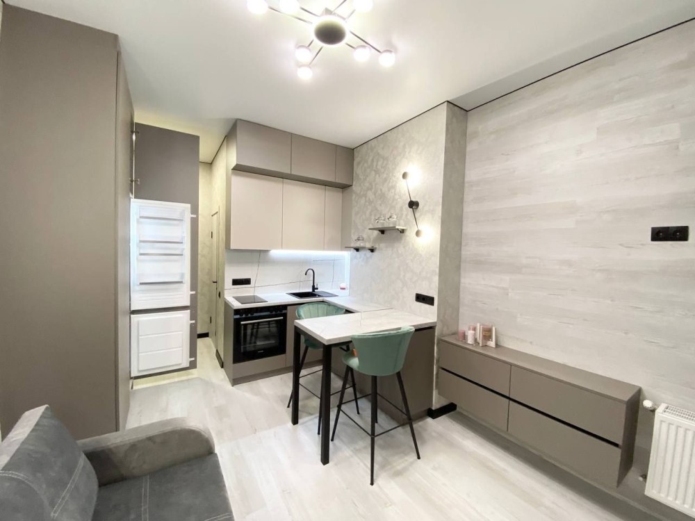 Оренда стильної 1 к кв з кухнею студією в новому будинку ЖК "Файна Таун" в Шевченківському районі, вул. Салютна, 2 Квартира 43 м2 , розташована на четвертому поверсі та складається з передпокою, спальні, великої кухні -студії та санвузла. Вікна квартири виходять в двір. Облаштована всіма необхідними меблями з екологічно чистої деревини та оснащена побутовою технікою: телевізор Samsung Smart 43, кондиціонери в кухні та кімнаті, плита індукційна, вбудований холодильник, духова шафа з функцією мікрохвильової печі, пральна машина з сушаркою. В кухні та ванній кімнаті тепла підлога, високошвидкісний інтернет. ЖК "Файна Таун" це: закрита територія з входом по картці, цілодобова охорона, відеоспостереження, паркінг, підземні контейнери для сміття, зарядні станції для електромобілів та лавки з інтегрованими батареями для підзарядки девайсів, розумне освітлення, яке підлаштовується під час доби та ще багато чого для того, щоб жити з комфортом й ні в чому себе не обмежувати) розповім при перегляді. Зручне транспортне сполучення та розвинута інфраструктура: магазини,спортивні та пішохідні зони ,зона барбекю, ресторани та кафе. Квартира, в якій поєднані комфорт та затишок, шукає своїх порядних орендарів молоду пару або одну людину без дітей та тварин. Перша оренда, квартира вільна.