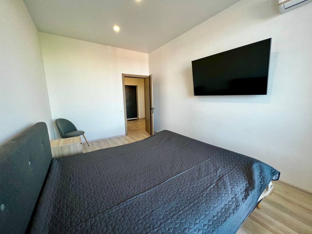 Оренда стильної 1 к кв з кухнею студією в новому будинку ЖК "Файна Таун" в Шевченківському районі, вул. Салютна, 2 Квартира 43 м2 , розташована на четвертому поверсі та складається з передпокою, спальні, великої кухні -студії та санвузла. Вікна квартири виходять в двір. Облаштована всіма необхідними меблями з екологічно чистої деревини та оснащена побутовою технікою: телевізор Samsung Smart 43, кондиціонери в кухні та кімнаті, плита індукційна, вбудований холодильник, духова шафа з функцією мікрохвильової печі, пральна машина з сушаркою. В кухні та ванній кімнаті тепла підлога, високошвидкісний інтернет. ЖК "Файна Таун" це: закрита територія з входом по картці, цілодобова охорона, відеоспостереження, паркінг, підземні контейнери для сміття, зарядні станції для електромобілів та лавки з інтегрованими батареями для підзарядки девайсів, розумне освітлення, яке підлаштовується під час доби та ще багато чого для того, щоб жити з комфортом й ні в чому себе не обмежувати) розповім при перегляді. Зручне транспортне сполучення та розвинута інфраструктура: магазини,спортивні та пішохідні зони ,зона барбекю, ресторани та кафе. Квартира, в якій поєднані комфорт та затишок, шукає своїх порядних орендарів молоду пару або одну людину без дітей та тварин. Перша оренда, квартира вільна.