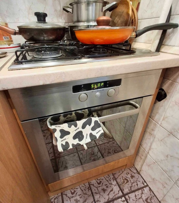 На кухне есть ГАЗОВАЯ варочная поверхность, духовой шкаф, вытяжка, большой холодильник, мультиварка.