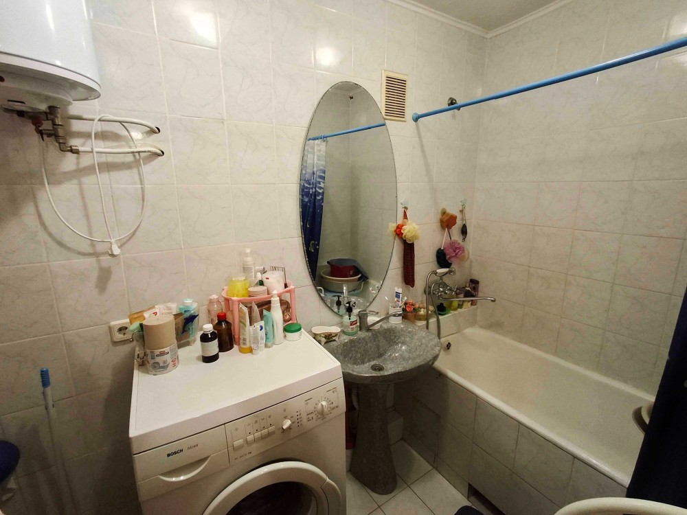 В ванной комнате есть ванна, бойлер, стиральная машина-автомат. В квартире есть застеклённый балкон, где можно сушить после стирки бельё.