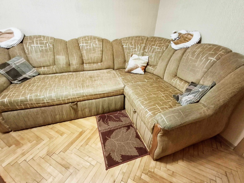 Отличное состояние, В комнате большой угловой раскладной диван, шкаф, рабочий компьютерный стол.
