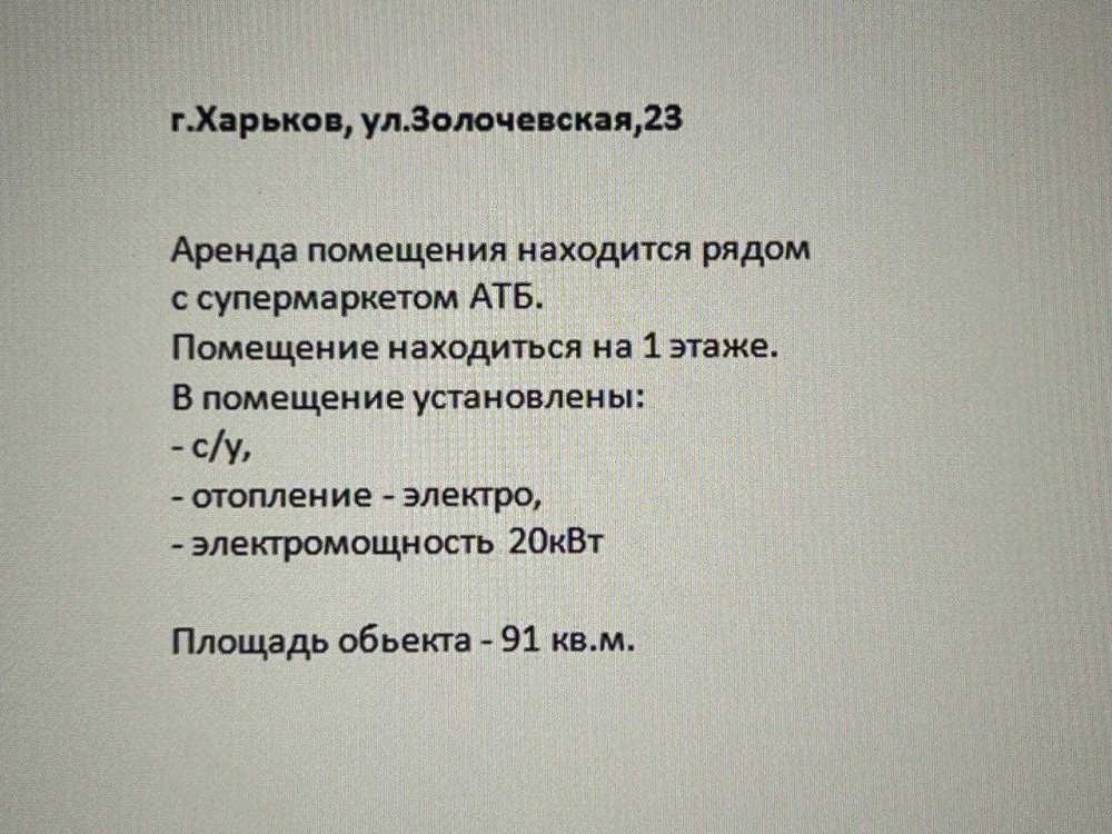 Аренда помещения в Харькове на Золочевской!