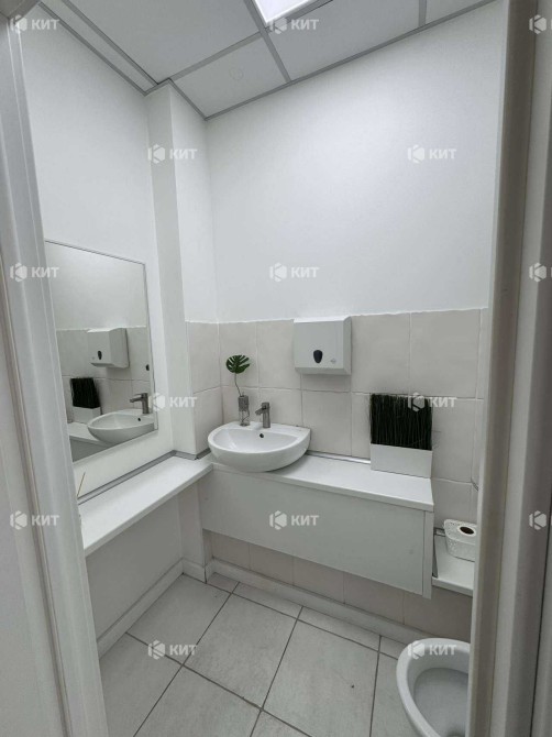 В приміщенні: стіни - гіпсокартон, підлога - плитка, стеля - армстронг, туалет з сантехнікою.