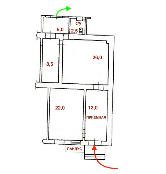 3 кабинета (26+22+8,5)m².