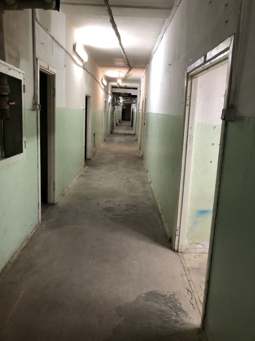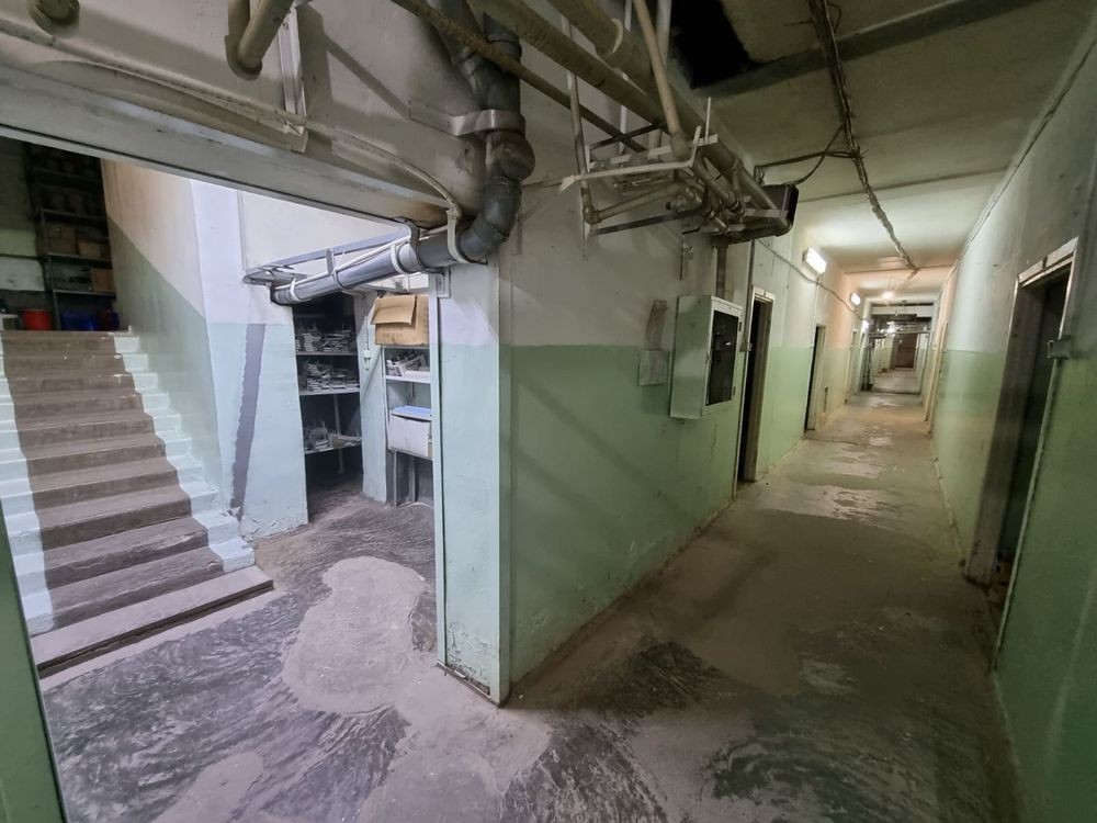 В подвале склада - длинный коридор и 20 разделённых комнат разной площади.