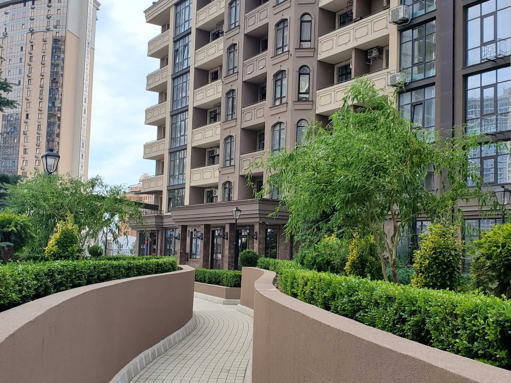 Дом со своей закрытой территорией с ландшафтным дизайном, детскими площадками и фонтаном, зонами отдыха и барбекю. Охраняемая территория с круглосуточным видеонаблюдением, трехуровневый подземный паркинг, консьерж-сервис, генераторы.
