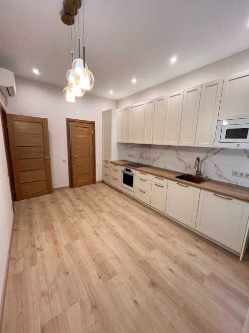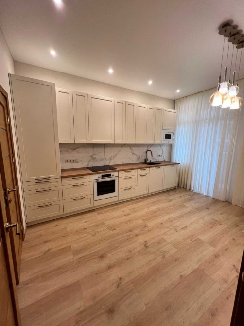 В квартире выполнен современный ремонт с использованием качественных материалов. Просторная кухня-столовая оборудована встроенной мебелью и техникой (варочная поверхность, духовка, посудомоечная машина, вытяжка, микроволновка, кондиционер). Санузлы современно облицованы, есть стиральная машинка, места хранения для всяких мелочей. На полу качественный ламинат в светлых теплых тонах, обои на стенах придают уюта, грамотно продумано освещение каждого пространства. Панорамное остекление дает больше света и пространства квартире. новый современный дом бизнес-класса.