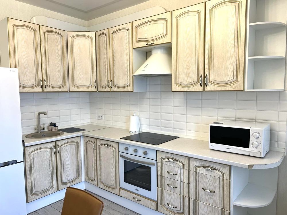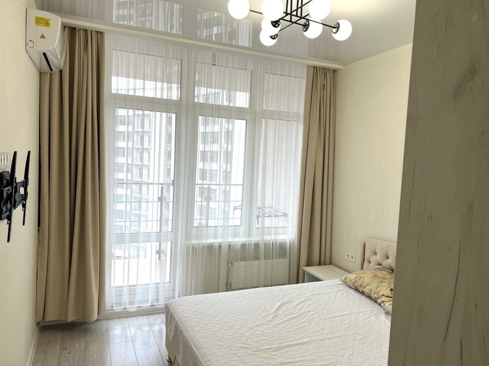 Оренда стильної 1 к кв з кухнею студією в новому будинку ЖК "Файна Таун" в Шевченківському районі, вул. Салютна, 2 Квартира 43 м2 , розташована на четвертому поверсі та складається з передпокою, спальні, великої кухні -студії та санвузла. Вікна квартири виходять в двір. Облаштована всіма необхідними меблями з екологічно чистої деревини та оснащена побутовою технікою: телевізор Samsung Smart 43, кондиціонери в кухні та кімнаті, плита індукційна, вбудований холодильник, духова шафа з функцією мікрохвильової печі, пральна машина з сушаркою. В кухні та ванній кімнаті тепла підлога, високошвидкісний інтернет. ЖК "Файна Таун" це: закрита територія з входом по картці, цілодобова охорона, відеоспостереження, паркінг, підземні контейнери для сміття, зарядні станції для електромобілів та лавки з інтегрованими батареями для підзарядки девайсів, розумне освітлення, яке підлаштовується під час доби та ще багато чого для того, щоб жити з комфортом й ні в чому себе не обмежувати) розповім при перегляді. Зручне транспортне сполучення та розвинута інфраструктура: магазини,спортивні та пішохідні зони ,зона барбекю, ресторани та кафе. Квартира, в якій поєднані комфорт та затишок, шукає своїх порядних орендарів молоду пару або одну людину без дітей та тварин. Перша оренда, квартира вільна.