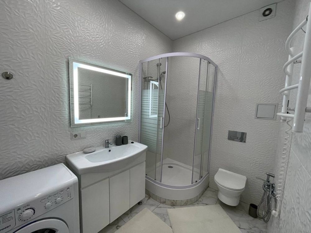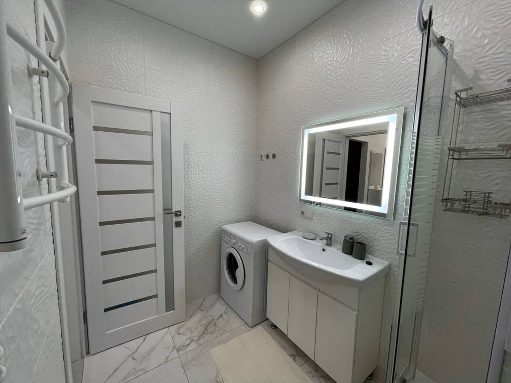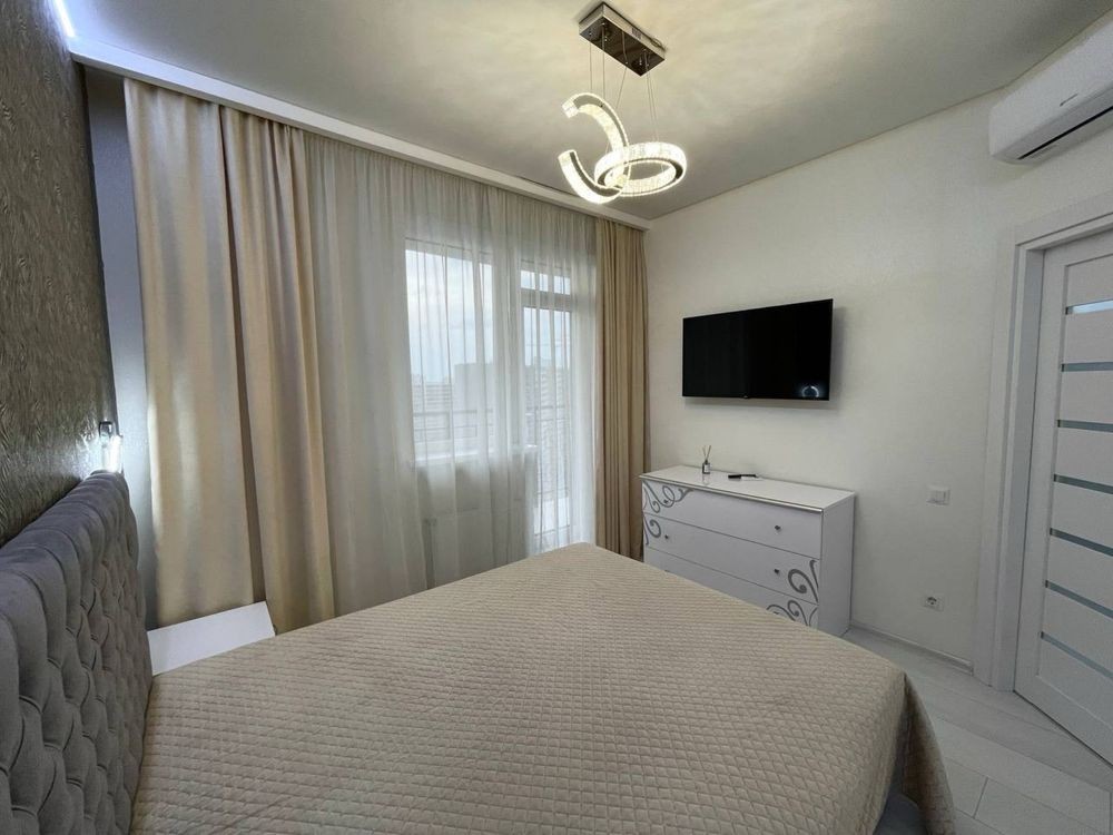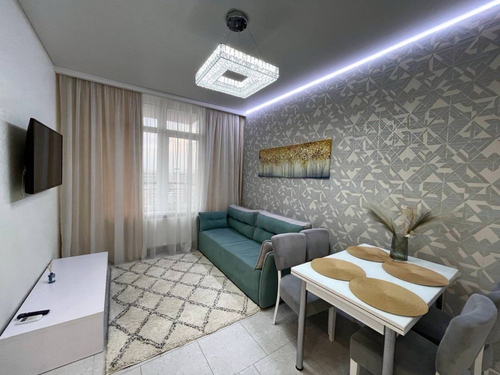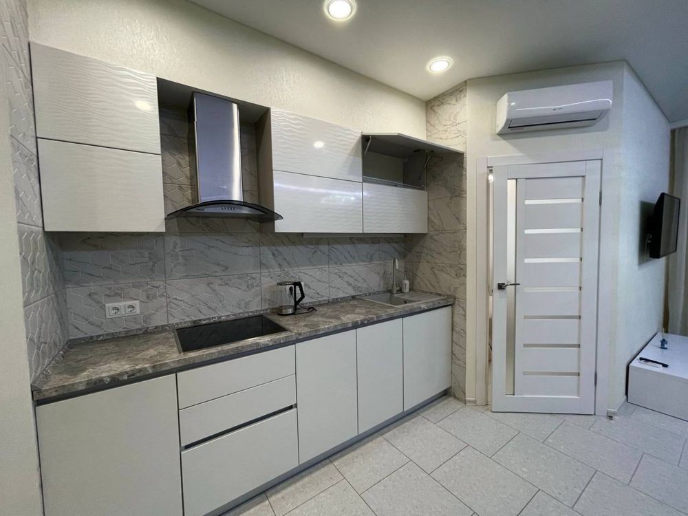Оренда стильної 1 к кв з кухнею студією в новому будинку ЖК "Файна Таун" в Шевченківському районі, вул. Салютна, 2 Квартира 43 м2 , розташована на четвертому поверсі та складається з передпокою, спальні, великої кухні -студії та санвузла. Вікна квартири виходять в двір. Облаштована всіма необхідними меблями з екологічно чистої деревини та оснащена побутовою технікою: телевізор Samsung Smart 43, кондиціонери в кухні та кімнаті, плита індукційна, вбудований холодильник, духова шафа з функцією мікрохвильової печі, пральна машина з сушаркою. В кухні та ванній кімнаті тепла підлога, високошвидкісний інтернет. ЖК "Файна Таун" це: закрита територія з входом по картці, цілодобова охорона, відеоспостереження, паркінг, підземні контейнери для сміття, зарядні станції для електромобілів та лавки з інтегрованими батареями для підзарядки девайсів, розумне освітлення, яке підлаштовується під час доби та ще багато чого для того, щоб жити з комфортом й ні в чому себе не обмежувати) розповім при перегляді. Зручне транспортне сполучення та розвинута інфраструктура: магазини,спортивні та пішохідні зони ,зона барбекю, ресторани та кафе. Квартира, в якій поєднані комфорт та затишок, шукає своїх порядних орендарів молоду пару або одну людину без дітей та тварин. Перша оренда, квартира вільна.