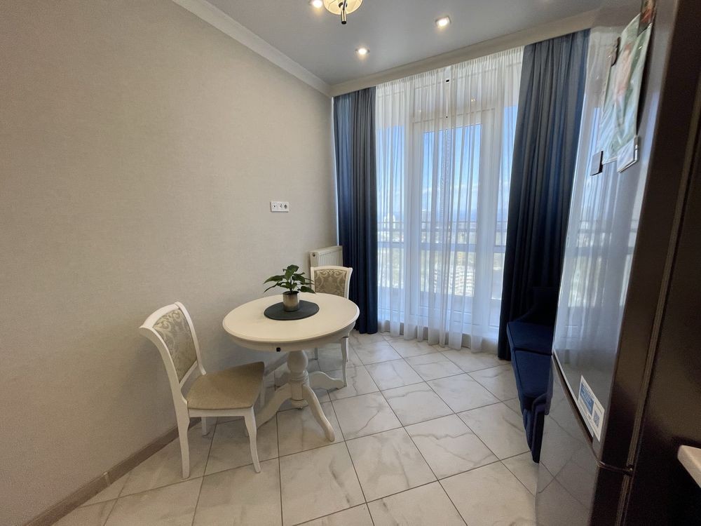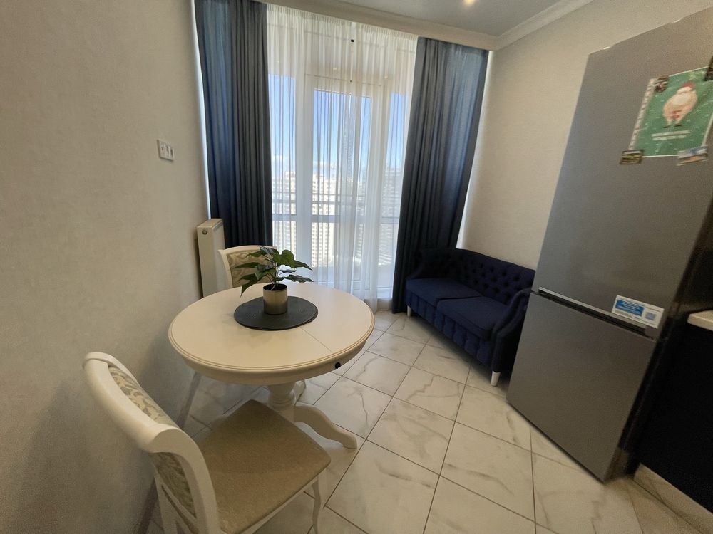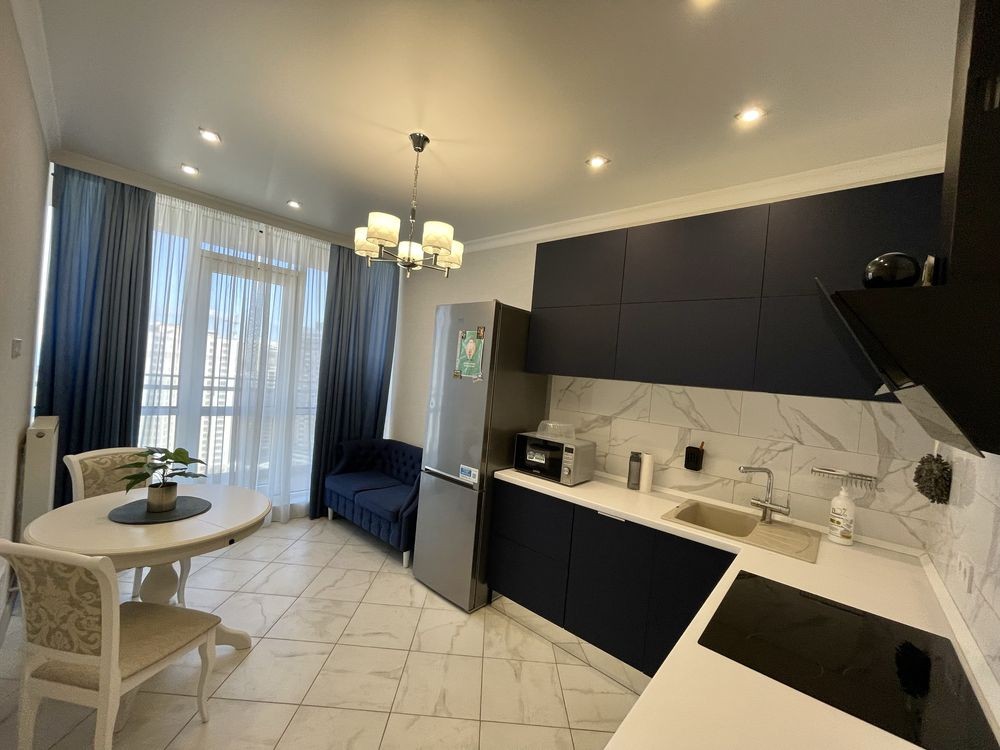 Оренда стильної 1 к кв з кухнею студією в новому будинку ЖК "Файна Таун" в Шевченківському районі, вул. Салютна, 2 Квартира 43 м2 , розташована на четвертому поверсі та складається з передпокою, спальні, великої кухні -студії та санвузла. Вікна квартири виходять в двір. Облаштована всіма необхідними меблями з екологічно чистої деревини та оснащена побутовою технікою: телевізор Samsung Smart 43, кондиціонери в кухні та кімнаті, плита індукційна, вбудований холодильник, духова шафа з функцією мікрохвильової печі, пральна машина з сушаркою. В кухні та ванній кімнаті тепла підлога, високошвидкісний інтернет. ЖК "Файна Таун" це: закрита територія з входом по картці, цілодобова охорона, відеоспостереження, паркінг, підземні контейнери для сміття, зарядні станції для електромобілів та лавки з інтегрованими батареями для підзарядки девайсів, розумне освітлення, яке підлаштовується під час доби та ще багато чого для того, щоб жити з комфортом й ні в чому себе не обмежувати) розповім при перегляді. Зручне транспортне сполучення та розвинута інфраструктура: магазини,спортивні та пішохідні зони ,зона барбекю, ресторани та кафе. Квартира, в якій поєднані комфорт та затишок, шукає своїх порядних орендарів молоду пару або одну людину без дітей та тварин. Перша оренда, квартира вільна.