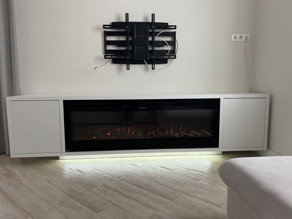 У вітальні є великий електричний камін. Сходи виготовленні з натурального дерева, на другому поверсі паркет.