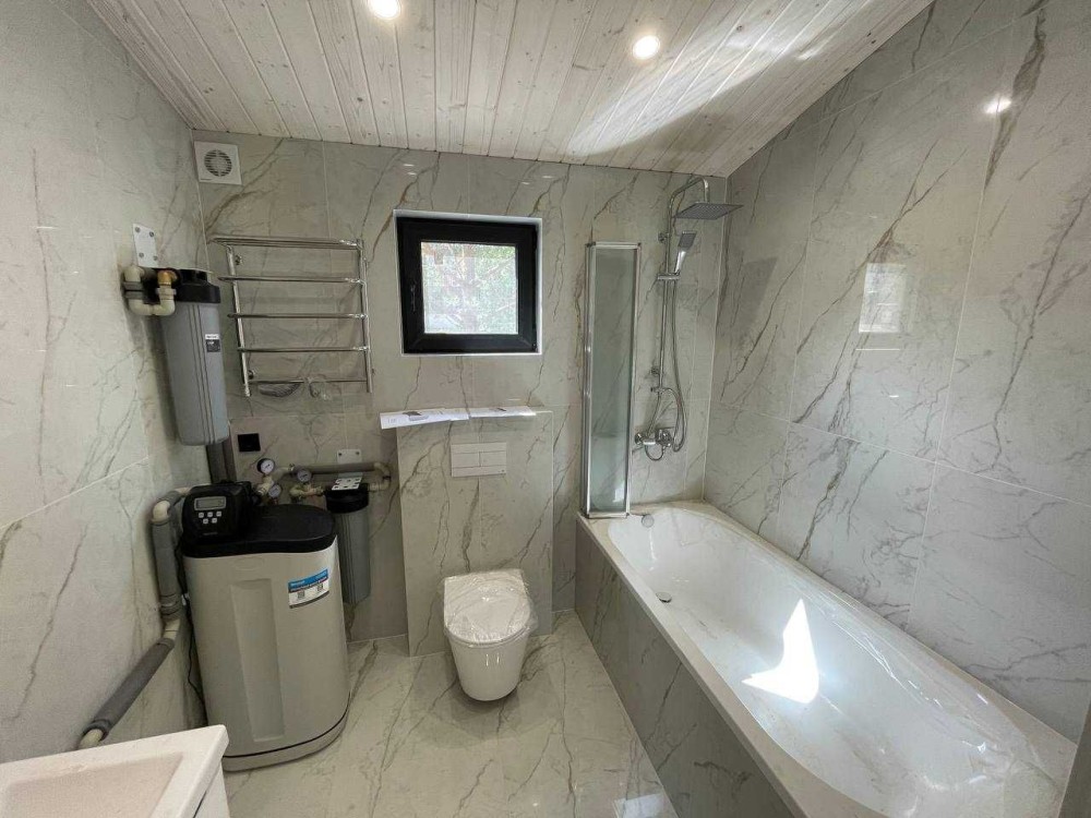 Плиточні роботи (матеріал + робота) — 3 670 $ Облицювання плиткою основної ванної кімнати та туалету.