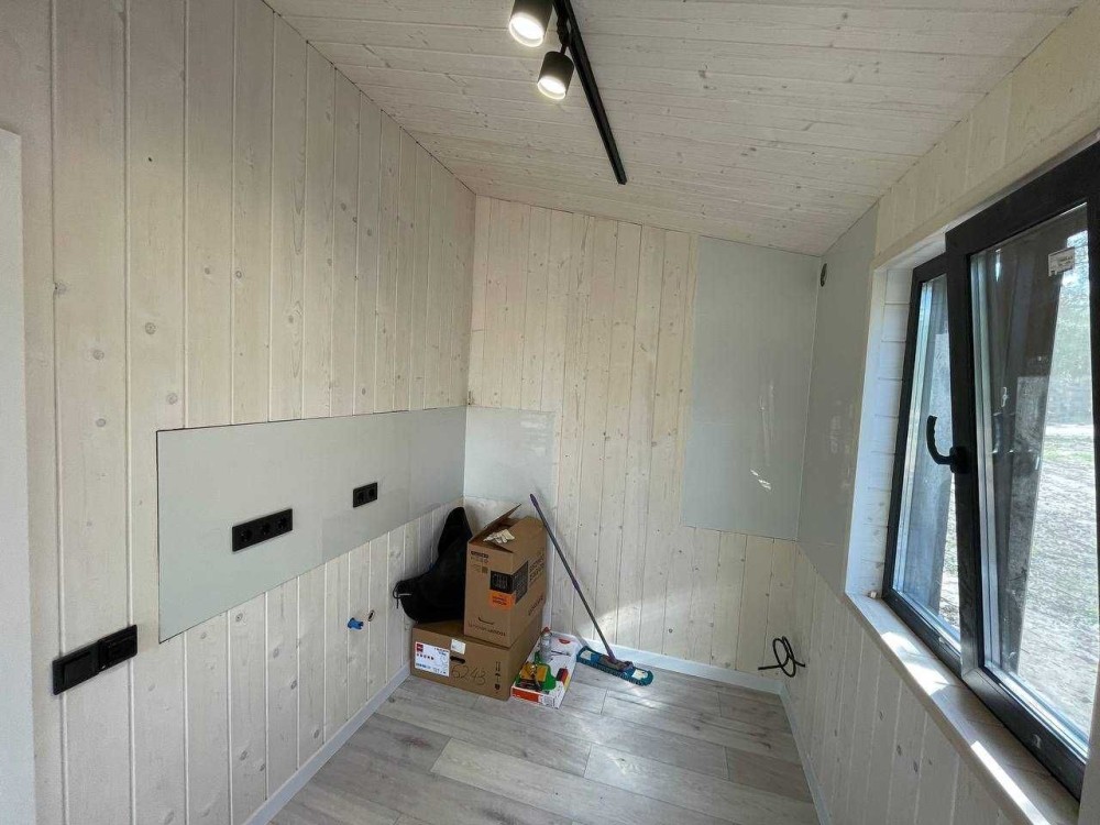 Утеплення: базальтова вата (стіни — 150 мм, підлога та стеля — 200 мм).