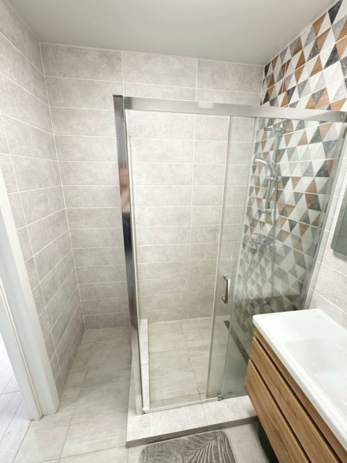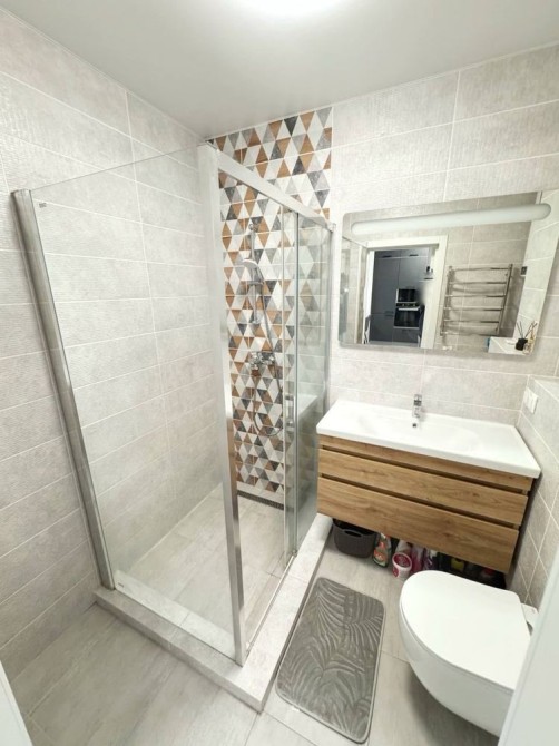 - Ванна кімната: обладнана умивальником, тепла підлога, підвісним туалетом, бойлером, пральною машиною та душевою кабіною із якісним гарнітуром.