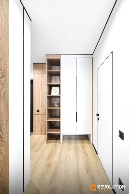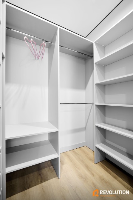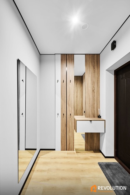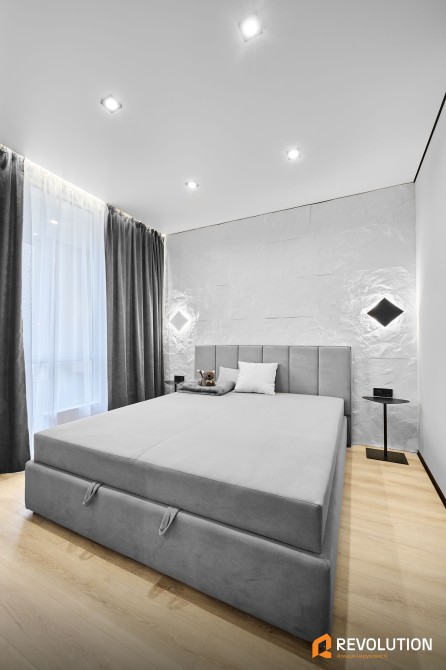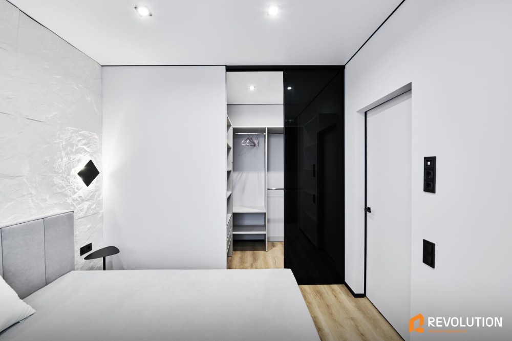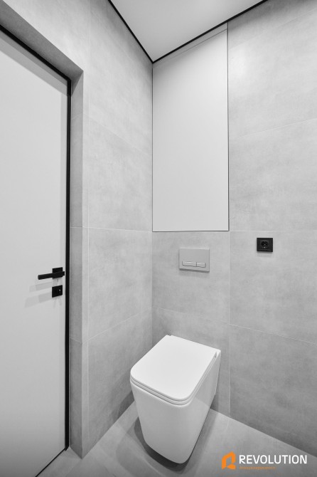 • У квартирі встановлені стильні двері прихованого монтажу, підібрані під кожну кімнату — сучасно, зручно та естетично.