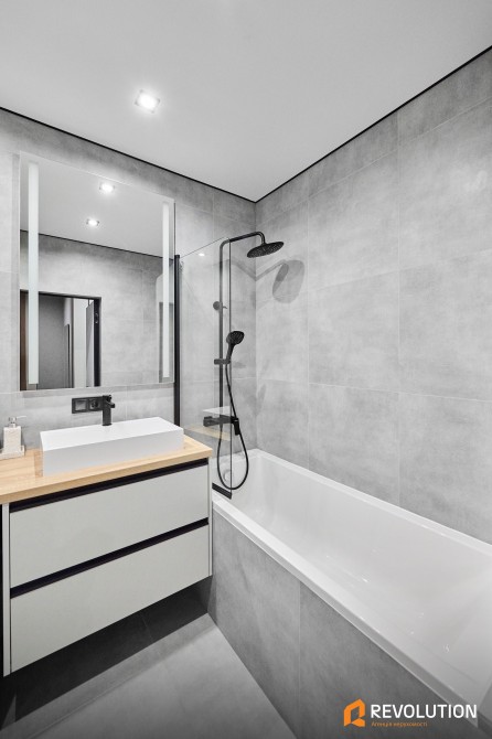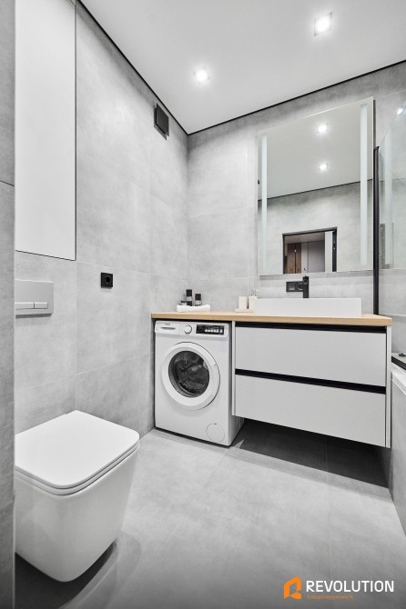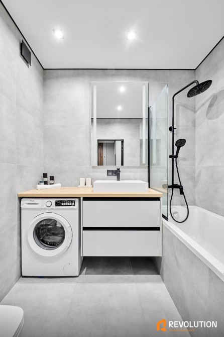 • Простора та функціональна ванна кімната з різними джерелами світла, великою ванною і зручними системами зберігання, а також електричним теплим підлогою.