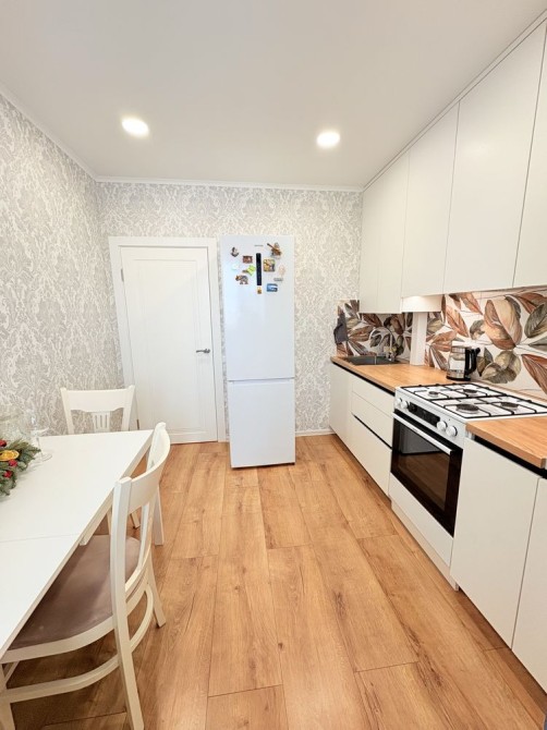 Плитка на кухні — Іспанія. Вологостійкий ламінат і шпалери — Німеччина. У ванній виконана гідроізоляція. Встановлені фільтри на воду.