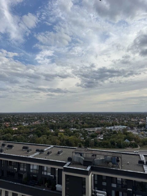 Видова квартира з панорамними вікнами загальною площею 75.4 м кв. розташована на 15 поверсі 26 поверхового будинку. З вікон відкривається краєвид на Дніпро та дачний масив Осокорки.