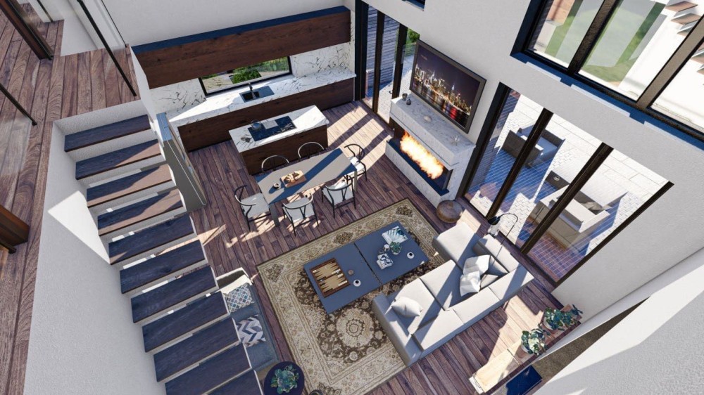 - дуже світла та простора кухня-вітальня 45м2 із другим світлом та виходом на терасу із зоною барбекю, також є місце підкамін.