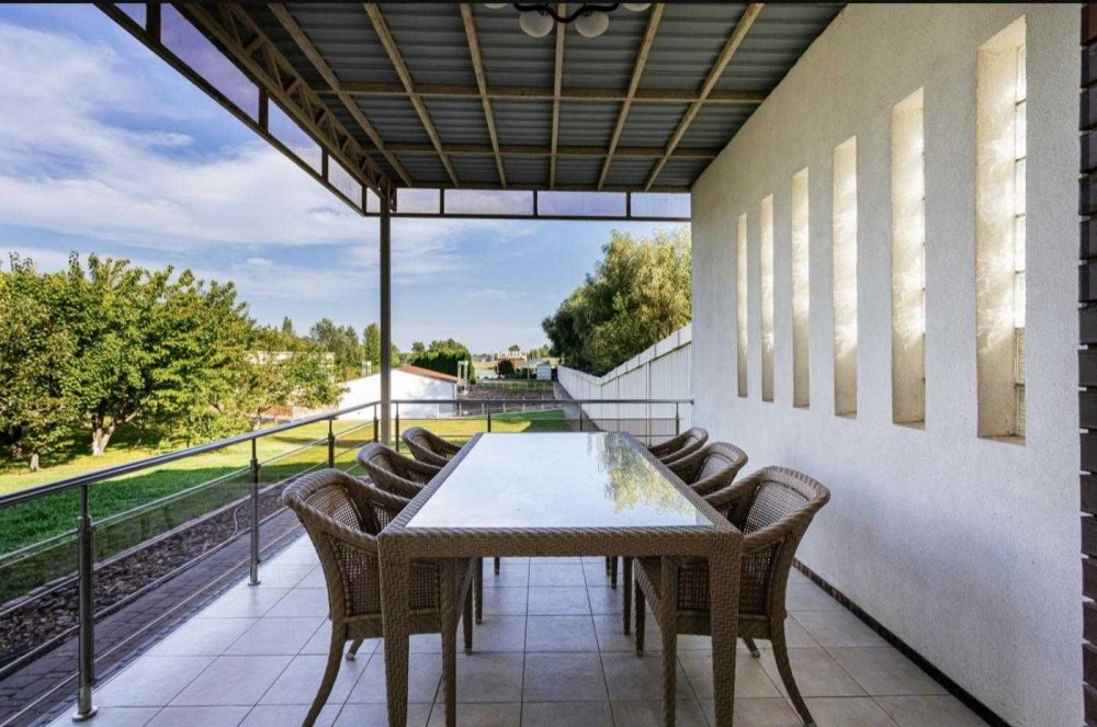 • На ділянці розташован гостьовий будинок 150м2, який включає - вітальню, кухню, санвузол, душеву, сауну, басейн, та підвал (яке є бомбосховищем).