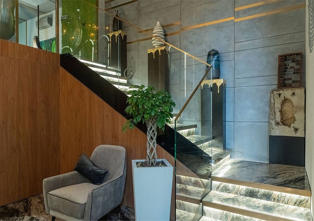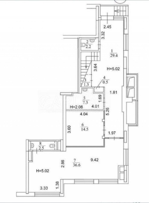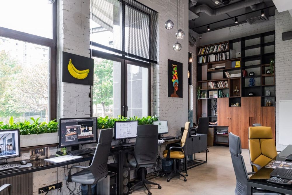Офіс дворівневий, висота стелі 3-5 метрів.