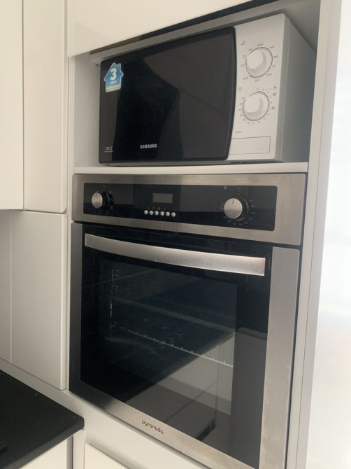 Вся техніка залишається: телевізор, посудомийна машинка, холодильник, пральна машинка, мікрохвильова піч.