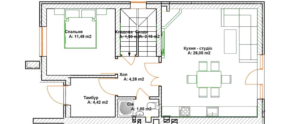 Дуплекс знаходиться в заселеній частині КМ. Сусіди вже зробили ремонт та живуть.
