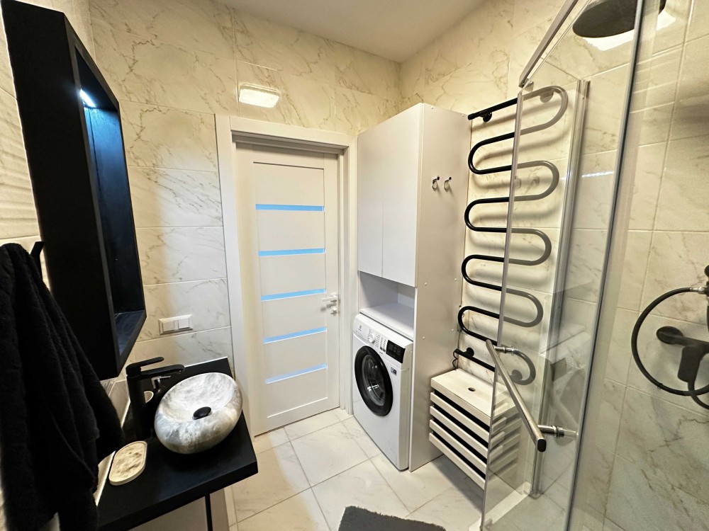 Повноцінний санвузол з сучасною сантехнікою.