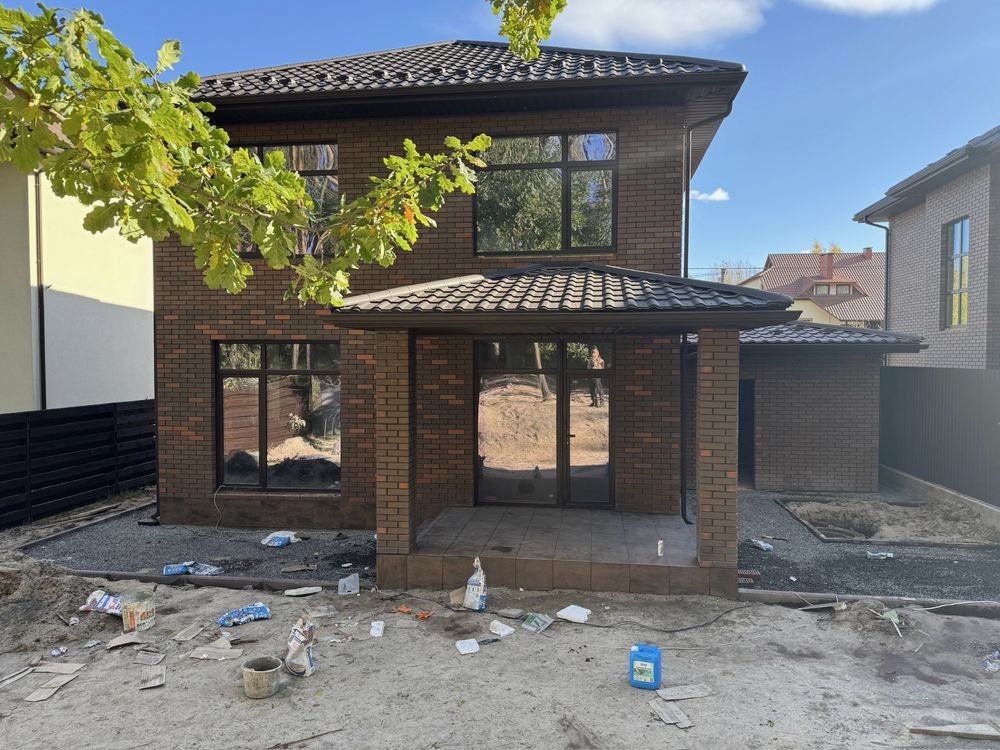 Броварской р.н.с.Рожны.Дом 2020г.Площадь жилая 210м2.Общая 300.Стены керамоблок.залиты межэтажные монолитные участок 36сот.Электричество15кВт.Интернет.Рядом лес.Маркет.базар.автобусная остановка.До города 20км