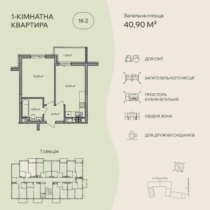 • Загальна площа 40.9 м2